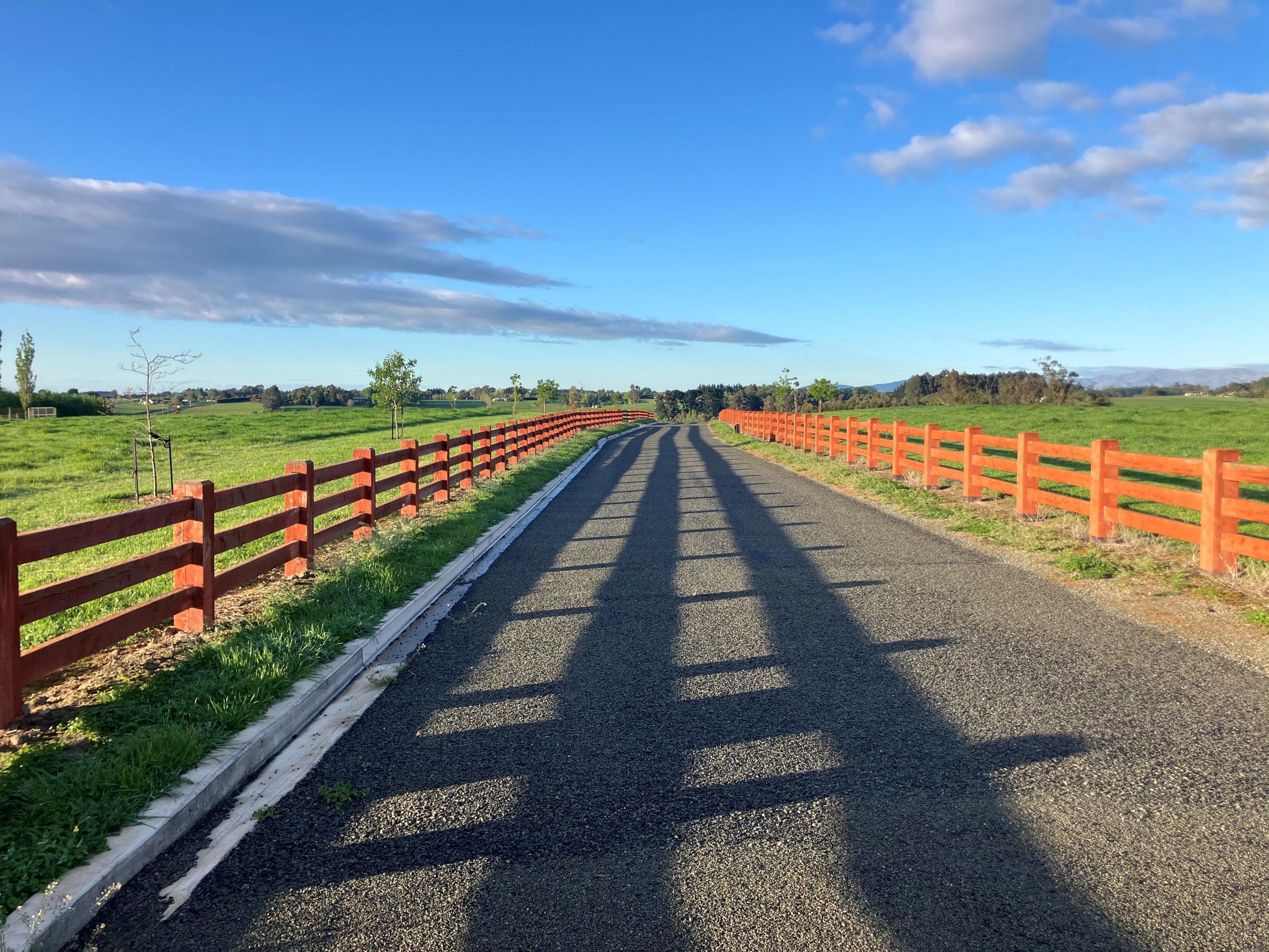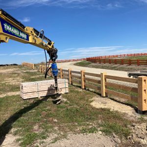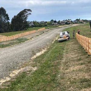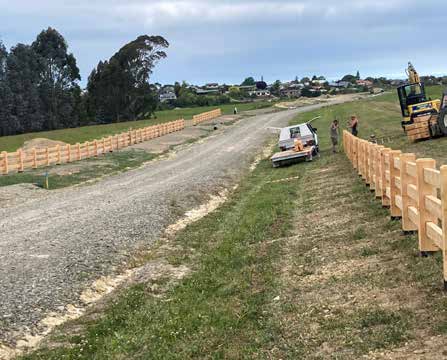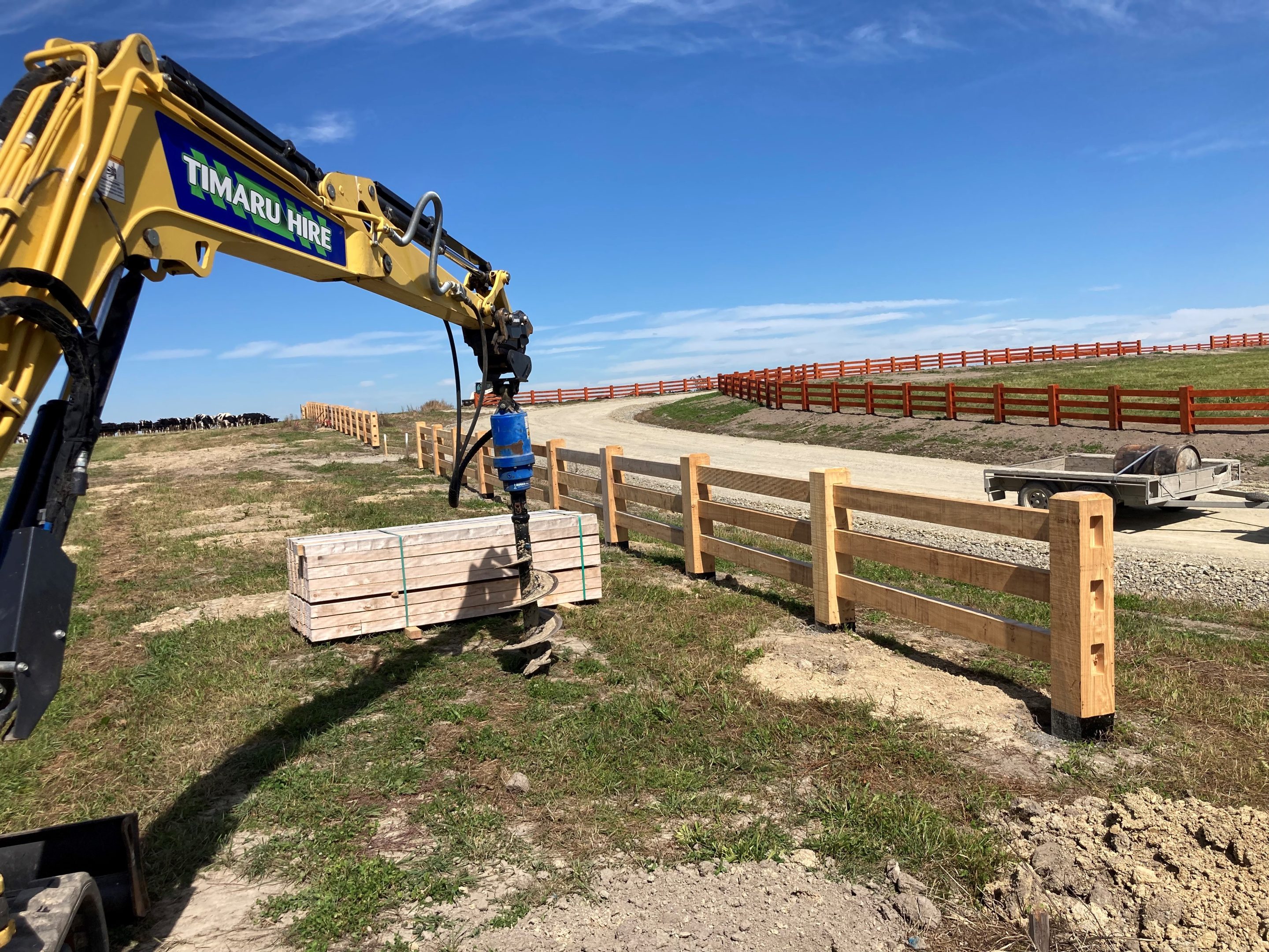 Building 2.6 km of macrocarpa post and rail for the Brookfields Heights subdivision in Timaru was a major step beyond the usual agricultural fencing work for South Canterbury-based Tony Brady Fencing.