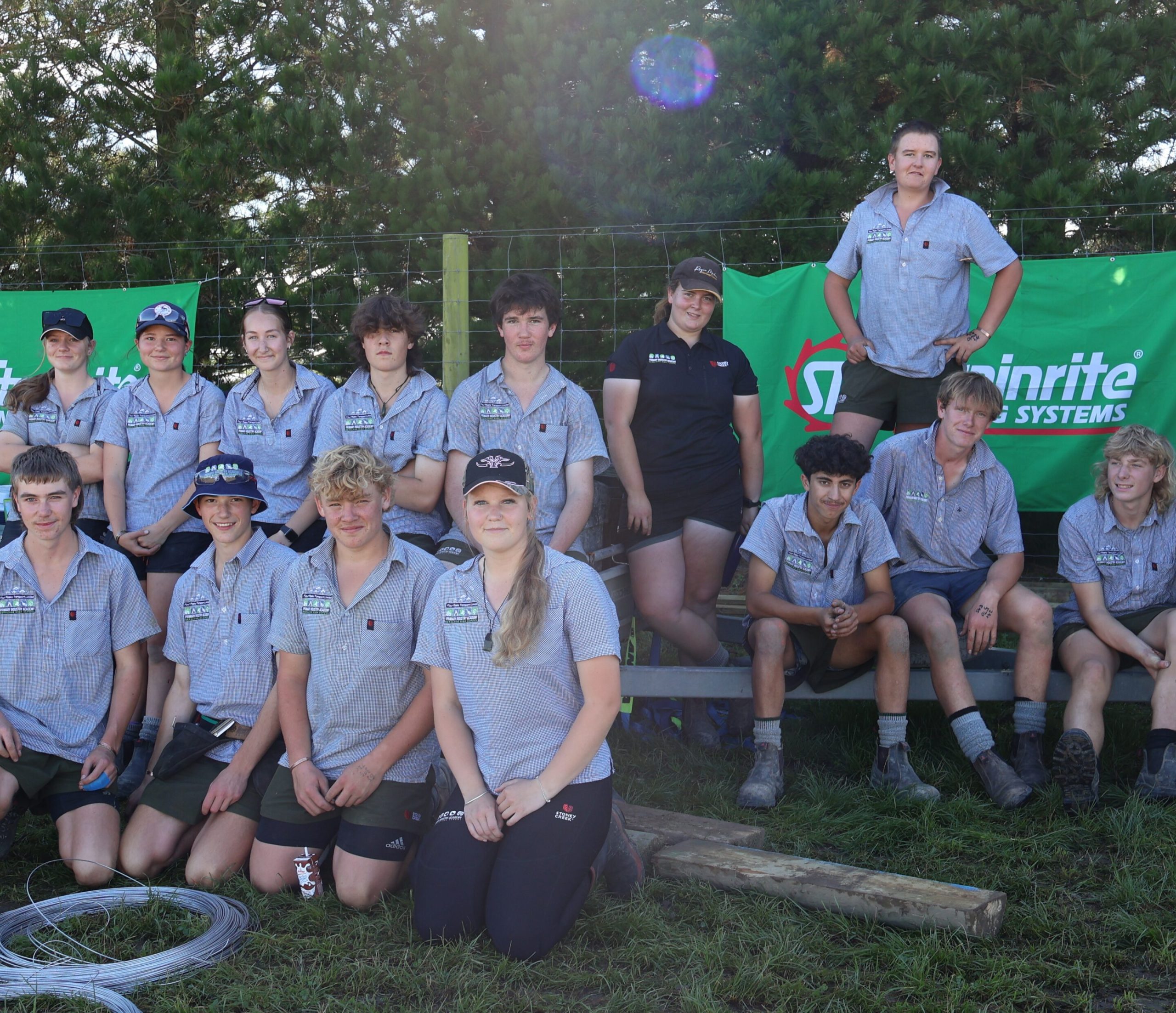 Fencing royalty happen to be onsite and Team Leader is quick off the mark to reacquaint herself with her famous friends: the NZ Fencing Competitions Committee Members, ex Golden Pliers winners, and posh contractors galore. Primary Industry Academy (PIA) stand in awe at the hobnobbing on display.